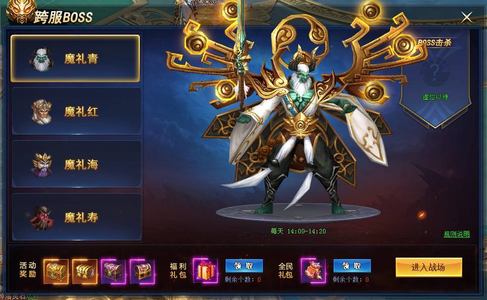 5. BOSS被击杀后,所有玩家还可领取全民礼包。