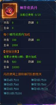 随着神符阶数的提升,玩家可使用的资质、神符丹的数量也会增加
