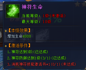 当玩家神符升到一定的阶数时,可以消耗“神符技能激活书”来激活神符技能