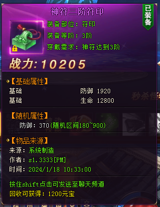 神符装备可为玩家附加属性,等阶越高、品质越好的装备,附加的属性越多