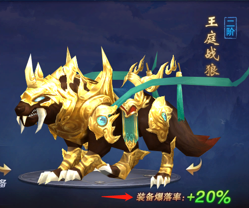 坐骑升阶可增加装备爆落率,增加野外BOSS掉落装备数量