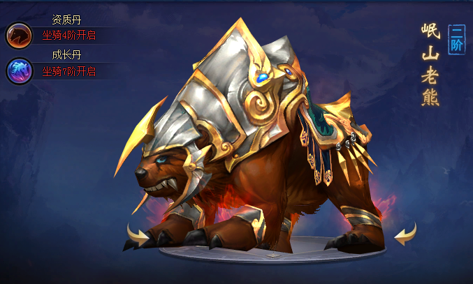 坐骑升至4阶时,玩家可在背包中使用“坐骑资质丹”,增加固定的坐骑属性