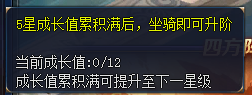 当坐骑达到5星,并且成长值也充满后,坐骑阶数+1,获得大量的属性加成,并激活新的坐骑外观: