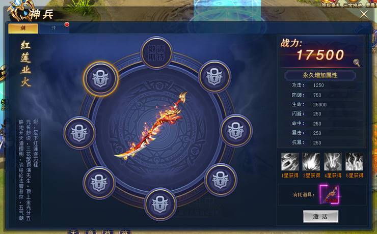 神兵激活后,还可继续从其他途径获得该神兵碎片,可以用这些多余的碎片给神兵升星
