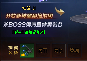 当神翼达到4阶后,可前往神翼4阶秘境,挑战神翼BOSS获取神翼装备