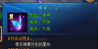 玩家激活某个神翼幻化后,可用神翼之尘对其进行升星