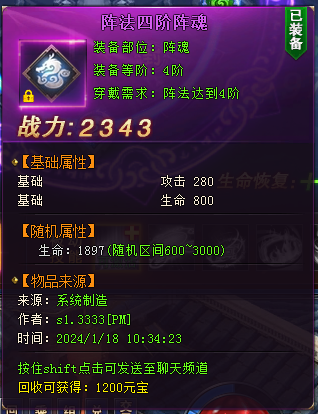 阵法装备可为玩家附加属性,等阶越高、品质越好的装备,附加的属性越多