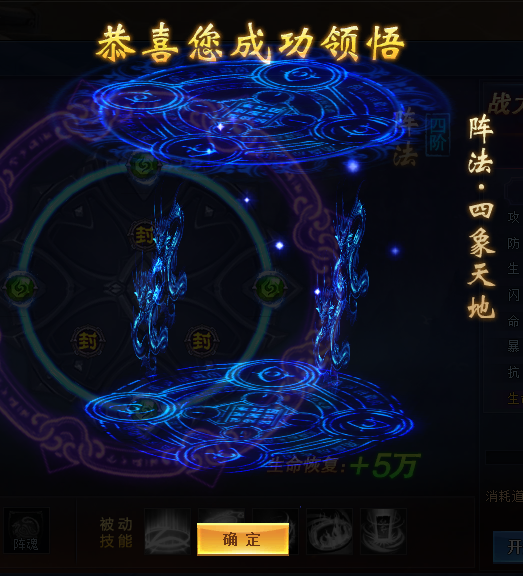 当玩家阵法升到一定的阶数时,可以消耗“阵法技能激活书”来激活阵法技能