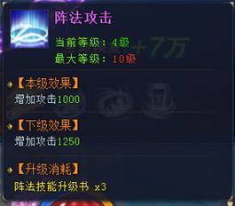 阵法技能激活后,可通过使用“阵法技能升级书”来提升技能等级