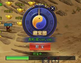 到达目标地点后,点击挖宝,即可触发藏宝图事件,并获得奖励