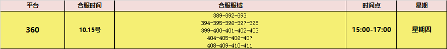 我们将于10月15日15:00-17:00对部分区服进行合区维护,