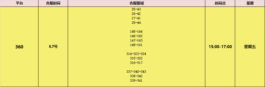 我们将于8月7日15:00-17:00对部分区服进行合区维护,