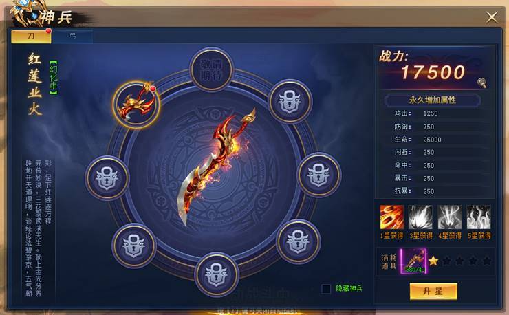 增加攻击,并永久增加所有神兵主动技能一定的固定伤害 |